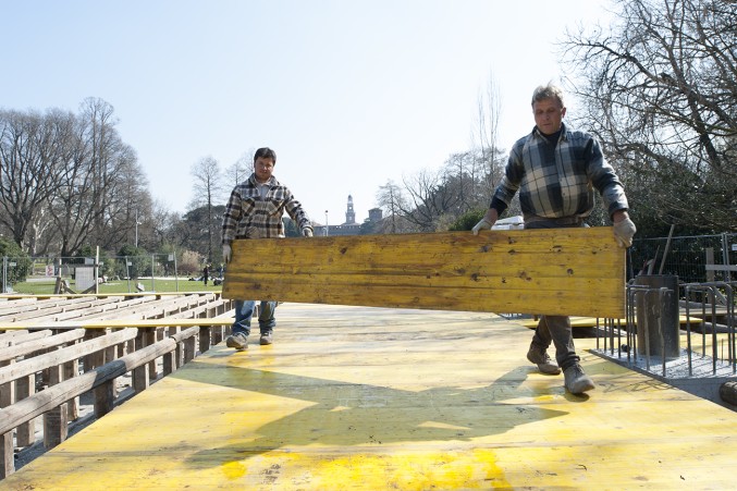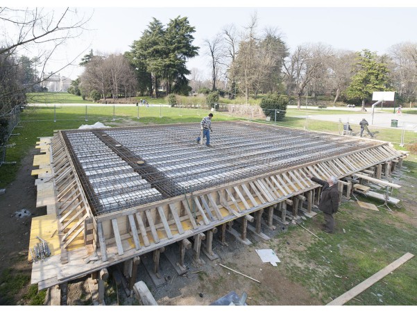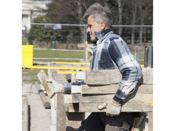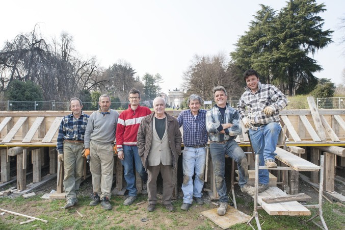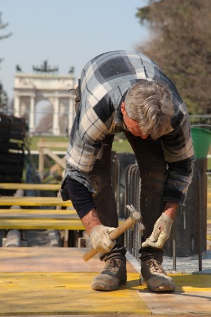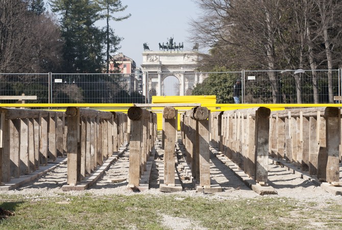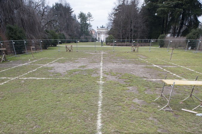La vita dell’essere umano e il tessuto urbano sono due forze che si scontrano continuamente. Da questo scontro si generano microeventi di quotidianità, situazioni, momenti. Interrogandomi sulla conoscibilità delle cose e sul nostro sguardo rispetto ad esse, provo a documentare ciò che al nostro sguardo sfugge, ciò che viene annullato dal nostro pensiero calcolante e dalle modalità automatiche in cui viviamo lo spazio. Il Teatro Continuo, opera che Alberto Burri aveva progettato per la Triennale di Milano nel 1973, a seguito della demolizione, viene restituita alla città nel 2015. Il teatro, situato in un traguardo ideale che attraversa il Parco, tra l’Arco della Pace e il Castello Sforzesco, è a completa disposizione della comunità. Il lavoro documenta la ricostruzione del teatro fino alla sua completa installazione, mostrandoci i volti e i corpi in movimento di chi ha partecipato attivamente ai lavori in corso: si va in scena. Il palcoscenico torna ad appartenere simbolicamente alla città, è un palcoscenico popolare che invita ad agire la vita nel rapporto con il tessuto urbano. Circoscrivendo l’azione di chi lo calca, esso trasforma ogni persona in figura scenica e ogni semplice azione in gesto esemplare, destinato a drammatizzare lo spazio. In questo modo il Teatro Continuo, come la fotografia, avvalora il protagonismo individuale e sociale e consente una riscoperta del significato dei ruoli e dei gesti di ognuno.